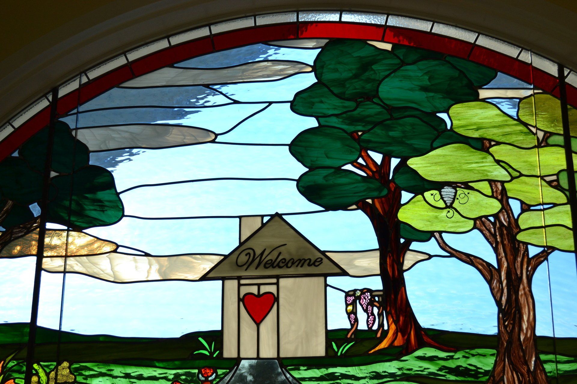 The window donated to Friendship Home by Coastal Art Glass is located above the front door and stands nine feet wide and five feet tall. The inspiration for the design of the window at Friendship Home is based on what the home represents – friendship, community, strength, and love.